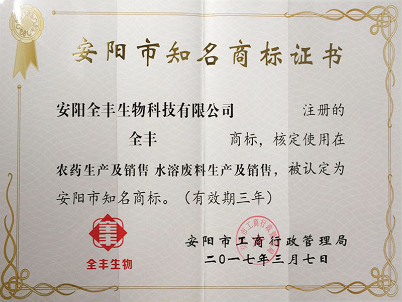 2017年度榮獲”安陽市知名商標(biāo)品牌全豐“