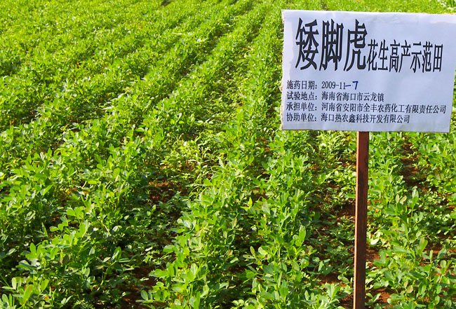 (1)施肥:苗期對氮、磷等營養(yǎng)元素吸收不多,但是團棵期,由于植株生長明顯加快,而種子中帶來的營養(yǎng)已基本耗盡,根瘤尚未形成。因此,苗期適當增施N和P能促進根瘤的發(fā)育,有利于根瘤菌固氮,顯著促進花芽分化數(shù)量,增加有效花數(shù)。建議在此時,結(jié)合花生需肥規(guī)律,葉面噴施硝酸鈣和磷酸二氮鉀,同時配合選擇使用復硝酚鈉、胺鮮酯DA-6、蕓苔素內(nèi)酯、三十烷醇、矮壯素、縮節(jié)胺等一種或兩種調(diào)節(jié)劑,促根增葉,培育壯苗。