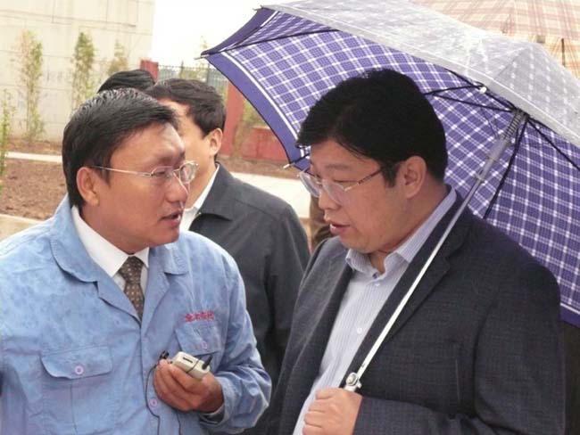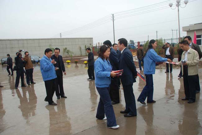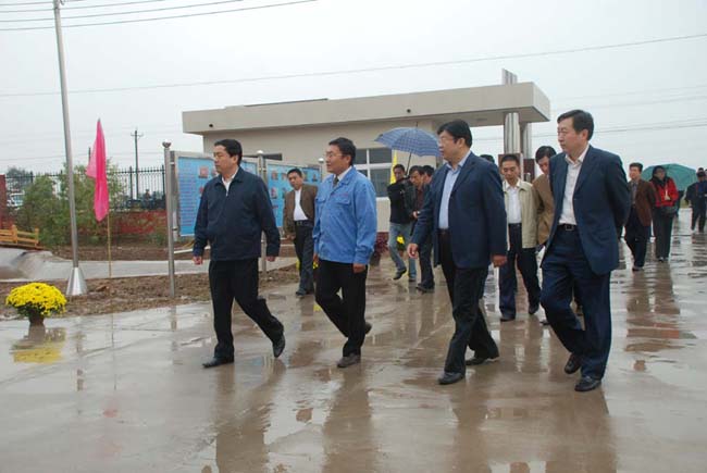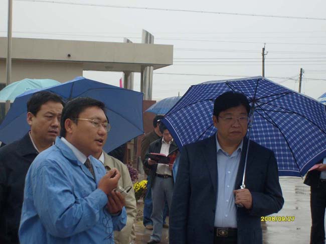2008年9月27日上午,安陽市委書記張廣智、市長張笑東和市政協(xié)主席趙微等領(lǐng)導(dǎo)率領(lǐng)市有關(guān)部門一行人冒著霏霏細(xì)雨到我公司考察指導(dǎo)工作。