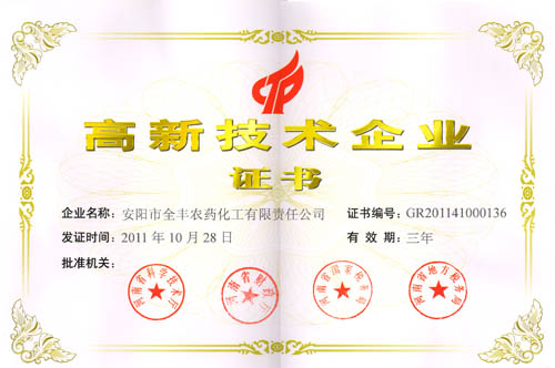 安陽全豐農藥集團被河南省科技廳評定為“河南省高新技術企業(yè)”