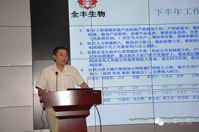 總結(jié)經(jīng)驗(yàn),發(fā)現(xiàn)問題,解決困難,展望未來。為了更好的服務(wù)廣大客戶和廣大的種植者,踐行“全心服務(wù),豐收萬家的”的不懈追求。2016年7月6日在全豐集團(tuán)新廠區(qū)的多功能報(bào)告廳,舉行了為期一天的專家技術(shù)講座和經(jīng)營(yíng)工作匯報(bào)。