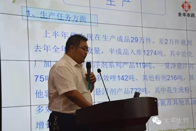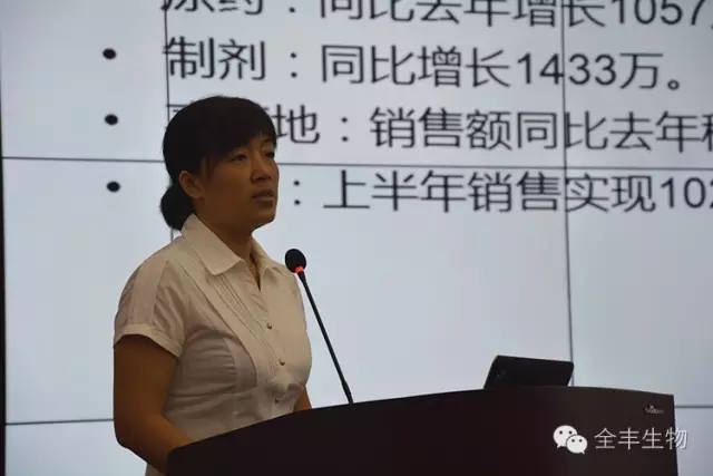全豐集團(tuán)制劑分公司張曉林就安陽全豐上半年的生產(chǎn)和銷售情況向大家匯報