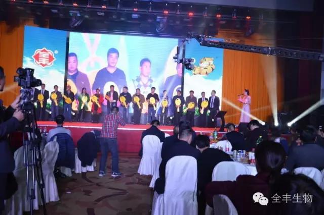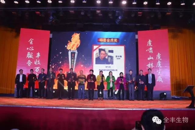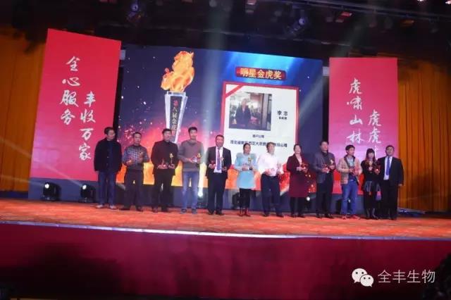 晚餐過后,激動人心的時刻到來了,一年一度的“金虎獎”頒獎盛典正式開始。向長期以來支持安陽全豐技術(shù)服務(wù)工作的單位和個人頒發(fā)“金虎獎”,并向業(yè)務(wù)突出的銷售精英頒發(fā)獎品。榮譽承載著辛勤的歲月,勇往直前是我們當(dāng)下的腳步。2017年我們來了,我們相信未來是屬于“全豐家人們”的未來,2017年“再創(chuàng)新高”。