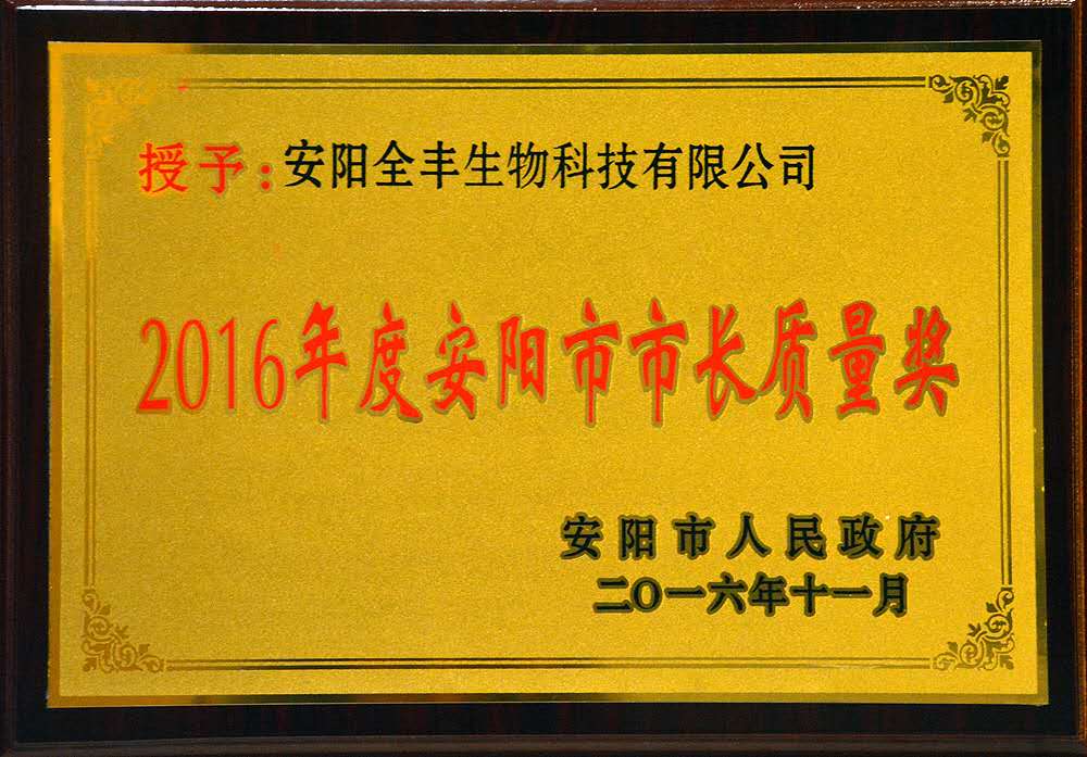 安陽(yáng)全豐生物科技有限公司喜獲“安陽(yáng)市市長(zhǎng)質(zhì)量獎(jiǎng)”
