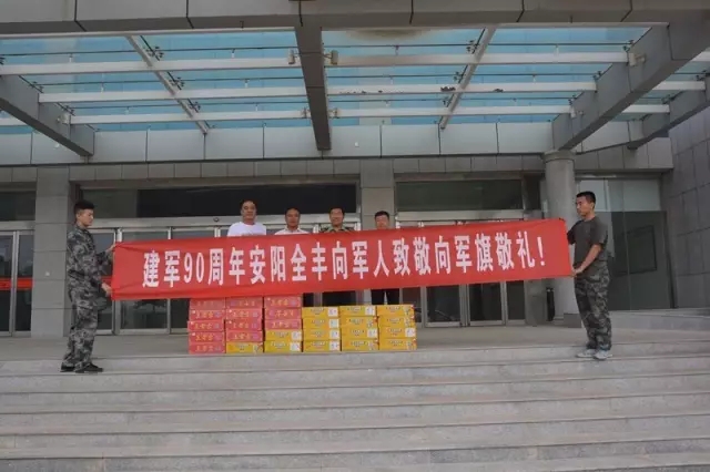 中國人民解放軍建軍90周年,2017年8月1日,安陽全豐生物科技有限公司副總經(jīng)理楊紅軍,全豐航空植保科技股份有限公司副總經(jīng)理、安陽太行低空空間應(yīng)用職業(yè)培訓(xùn)學(xué)校校長陳磊,綜合辦副主任張志剛一行受全豐公司董事長兼總經(jīng)理王志國的委托,帶著對駐安子弟兵的深情厚誼到北關(guān)區(qū)武裝部、安陽市看守所、安陽市武警消防中隊看望慰問部隊官兵,向他們致以節(jié)日的問候和美好的祝福,并送去了慰問物品,受到官兵們的熱烈歡迎!