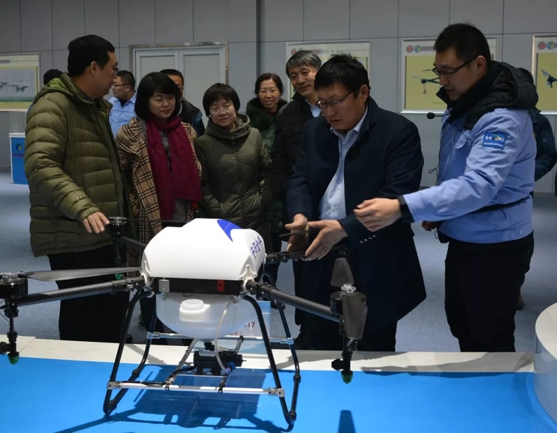 全豐董事長(zhǎng)王志國(guó)向各位領(lǐng)導(dǎo)專(zhuān)家等講解全豐自由鷹多旋翼無(wú)人機(jī)