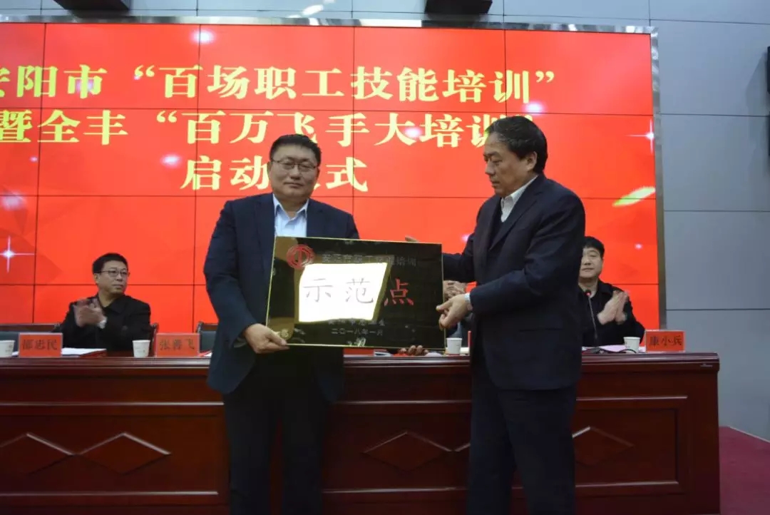 啟動儀式上,市人大常委會副主任、市總工會主席張善飛為安陽全豐頒授“安陽市職工技能培訓(xùn)示范點”牌匾。在熱烈的掌聲中,張善飛主席宣布:安陽市“百場職工技能培訓(xùn)”暨全豐“百萬飛手大培訓(xùn)”正式啟動!