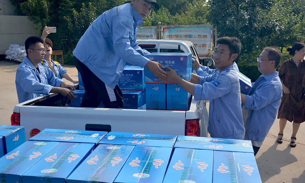 7月25日,第三批捐贈物資滿載田間災(zāi)后復(fù)產(chǎn)物資藥品的車隊一路開往安陽縣永和鄉(xiāng)和湯陰縣,對安陽縣、湯陰縣捐贈一萬畝受災(zāi)玉米抗逆抗病植調(diào)劑增產(chǎn)防治,進行現(xiàn)場防疫消殺作業(yè)。后續(xù)北關(guān)區(qū)災(zāi)后防疫和玉米災(zāi)后恢復(fù)生產(chǎn)防治也正在統(tǒng)計進行中。